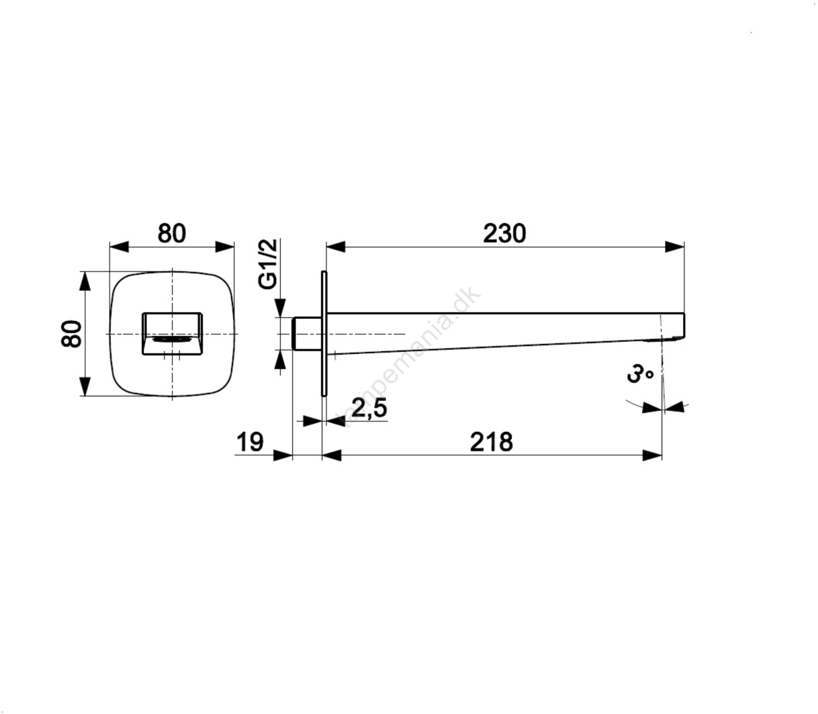 KFA Armatura 836-007-61 - Udløbstud til indbygget montering MALAGA, metalgrå