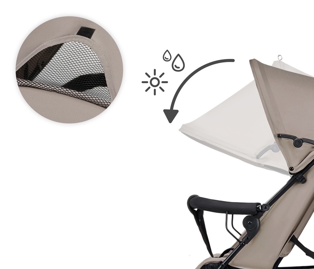 • Udtrækkelig kaleche giver skygge og beskyttelse og er udstyret med et vindue for nem kontakt med barnet.