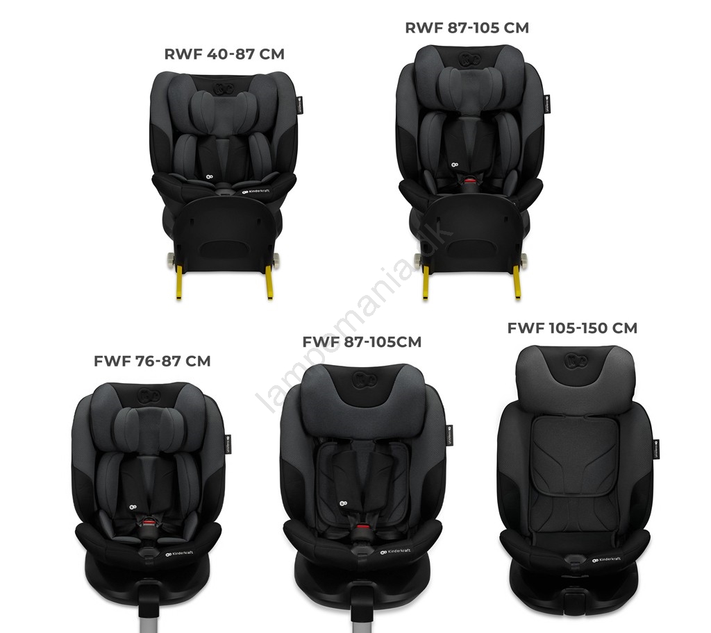 • Bagudvendt kørsel (RWF) er mulig helt op til 4 år, hvilket markant øger sikkerheden ved frontale sammenstød.