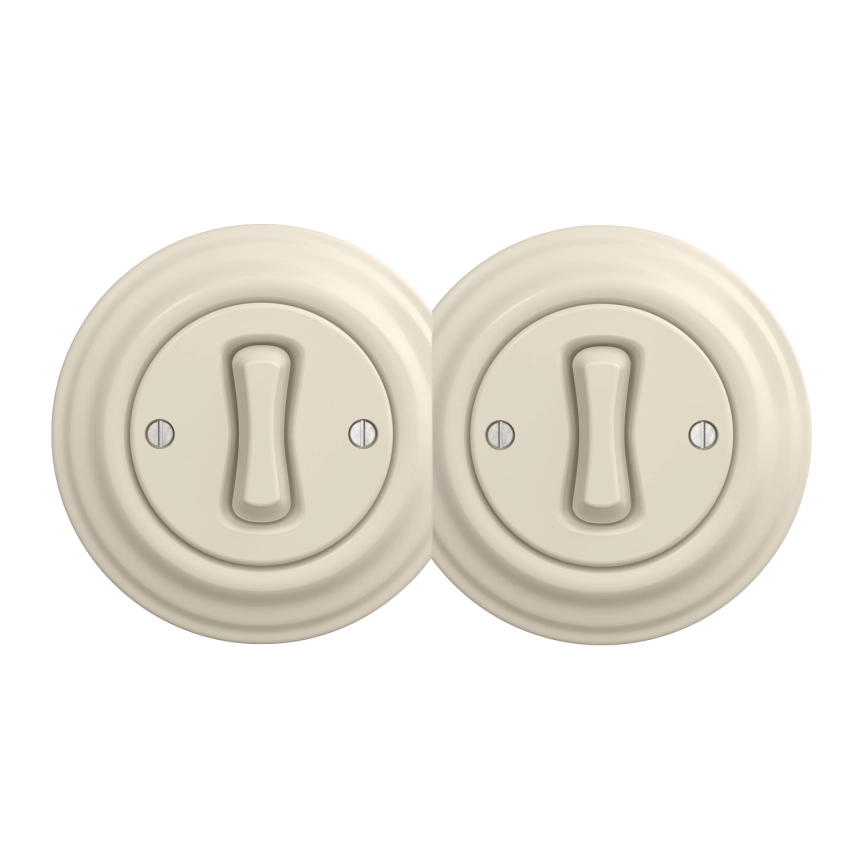Kliklap - Dobbelt retro enkeltpolet afbryder med ramme nr. 1 beige