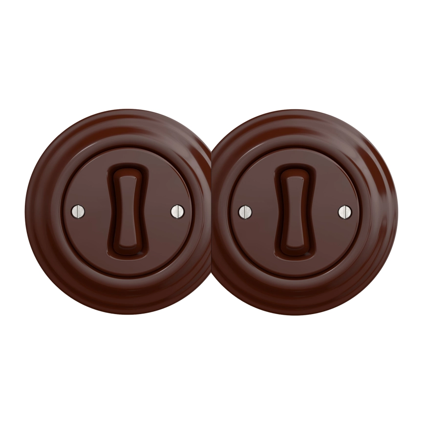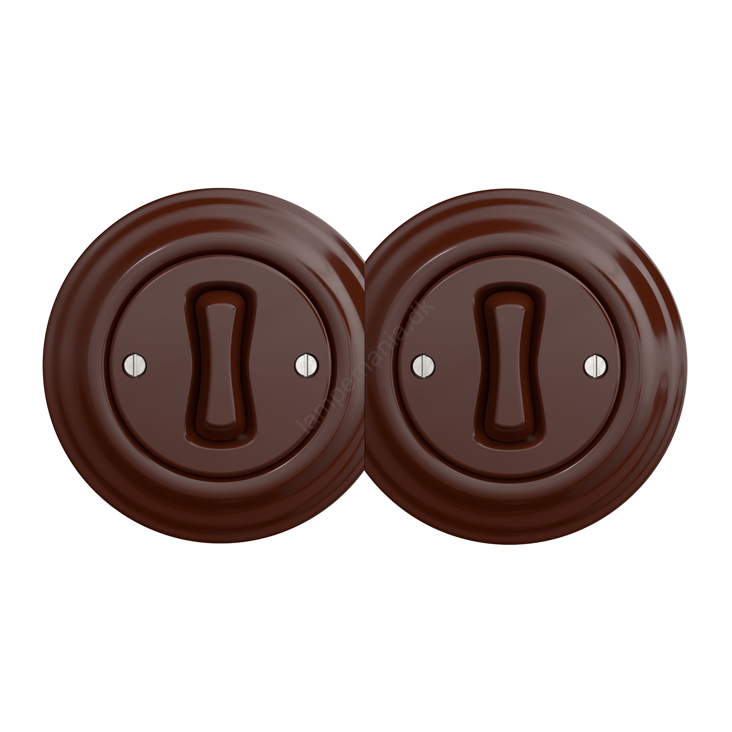 Kliklap - Dobbelt retro enkeltpolet afbryder med ramme nr. 1, brun