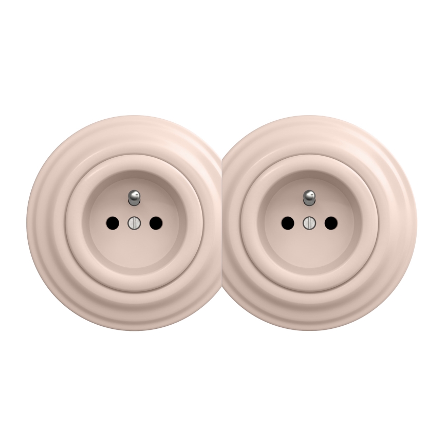 Kliklap - Dobbelt retro-stikkontakt til hjemmet med ramme 230 V gammelrosa