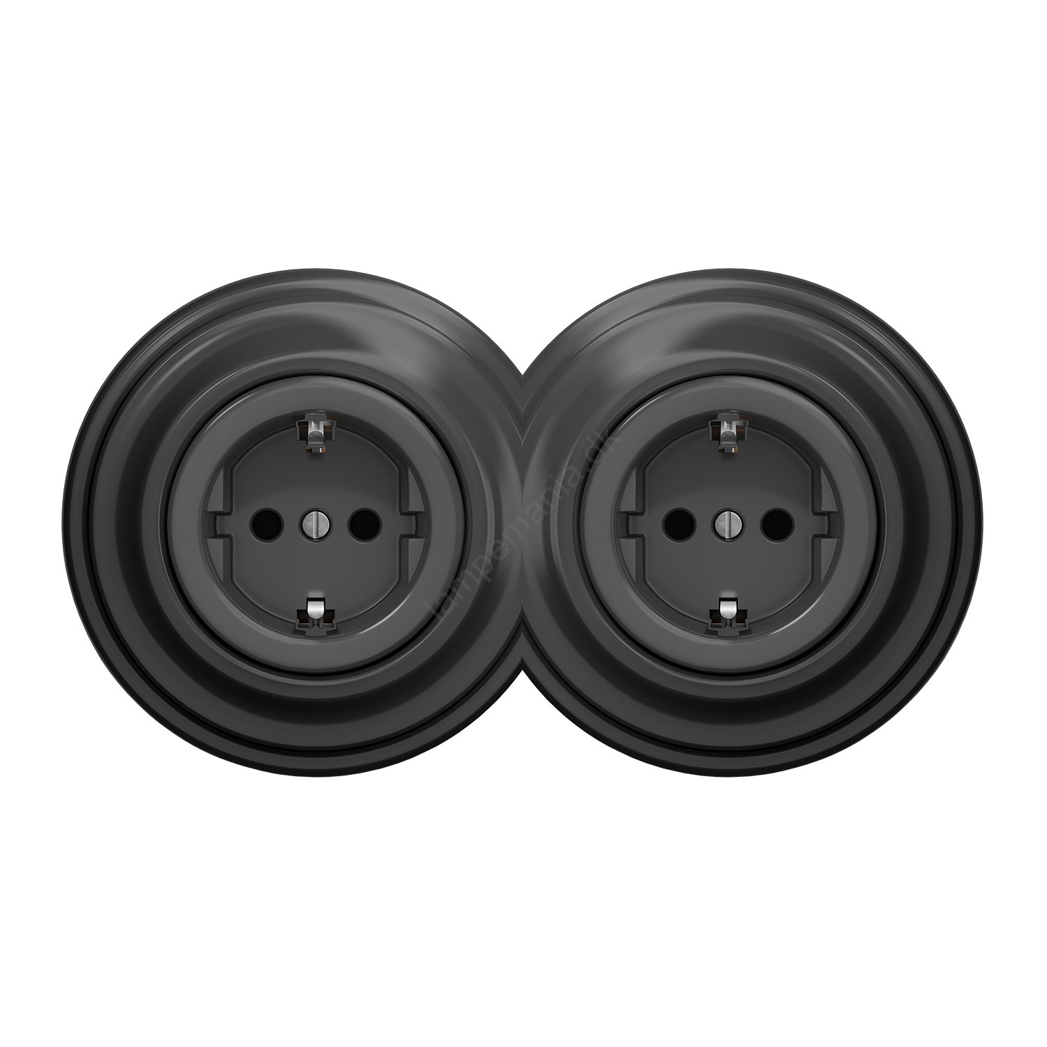 Kliklap - Dobbelt retro stikkontakt til indendørs brug med ramme, SCHUKO, 230 V, antracit