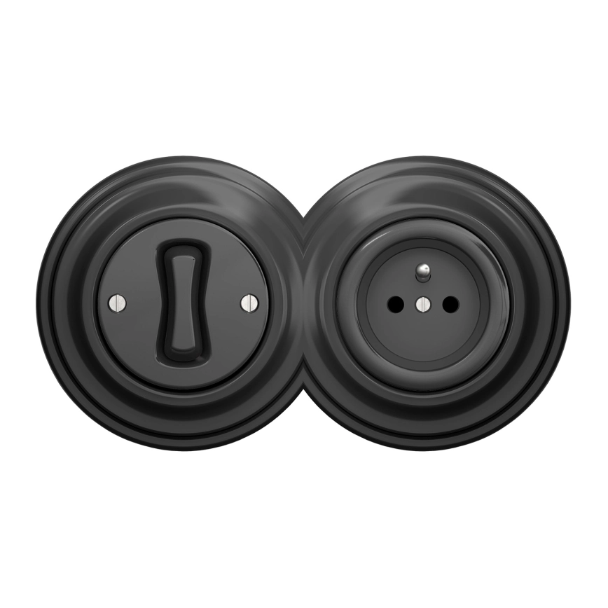 Kliklap - Retro enkeltpolet afbryder nr. 1 og 230 V stikkontakt med ramme i antracit