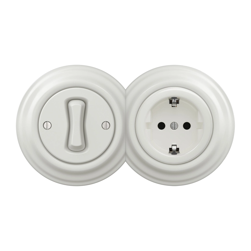 Kliklap - Retro enpolet afbryder nr. 1 og SCHUKO-stikkontakt 230 V med ramme, hvid