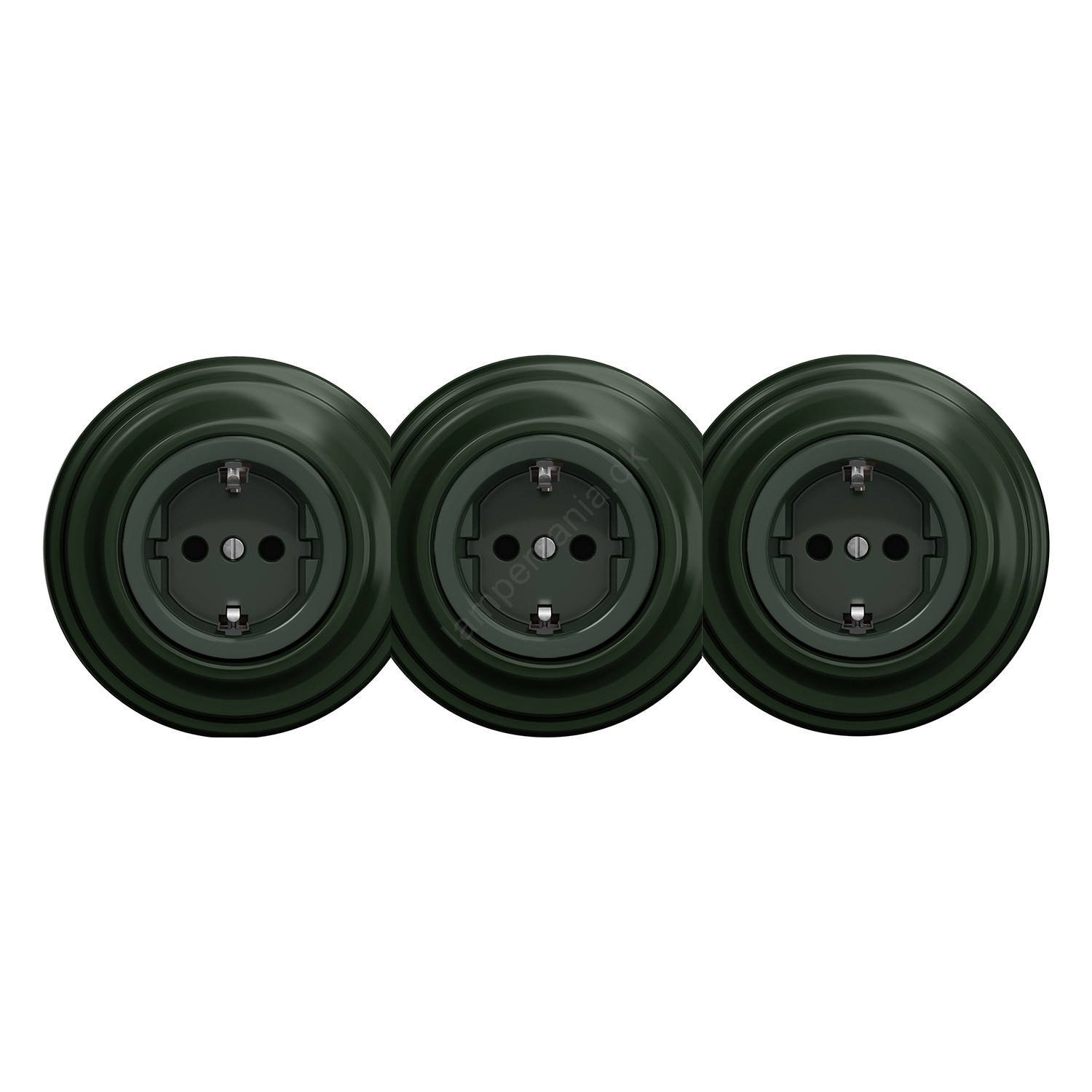 Kliklap - Tredobbelt retrostikkontakt til hjemmet med ramme, SCHUKO 230V, grøn