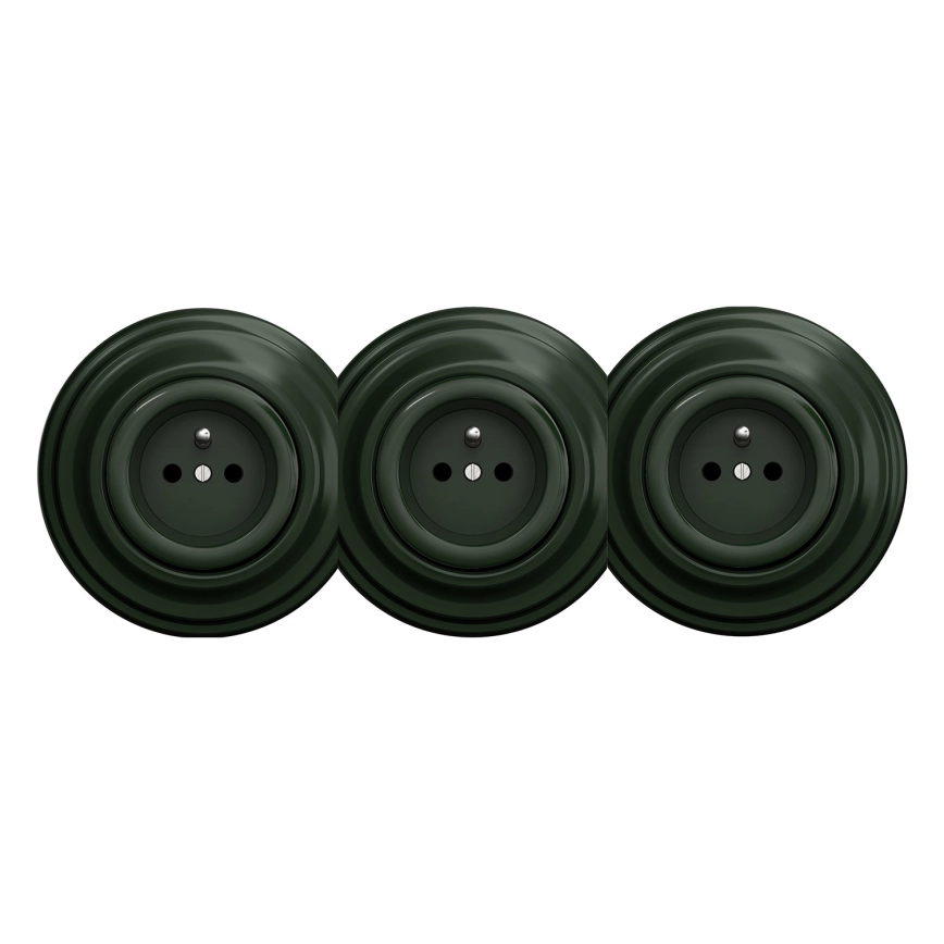 Kliklap - Tredobbelt retro-stikkontakt til hjemmet med ramme, 230 V, grøn