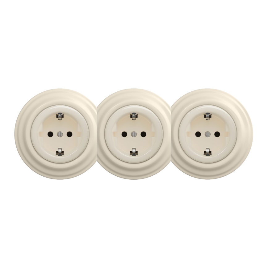 Kliklap - Tredobbelt retrostikkontakt til hjemmet med ramme, SCHUKO 230 V, beige