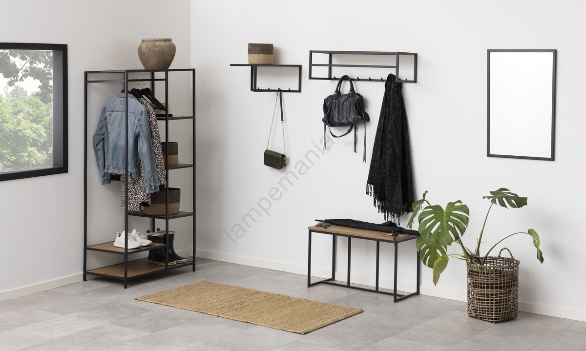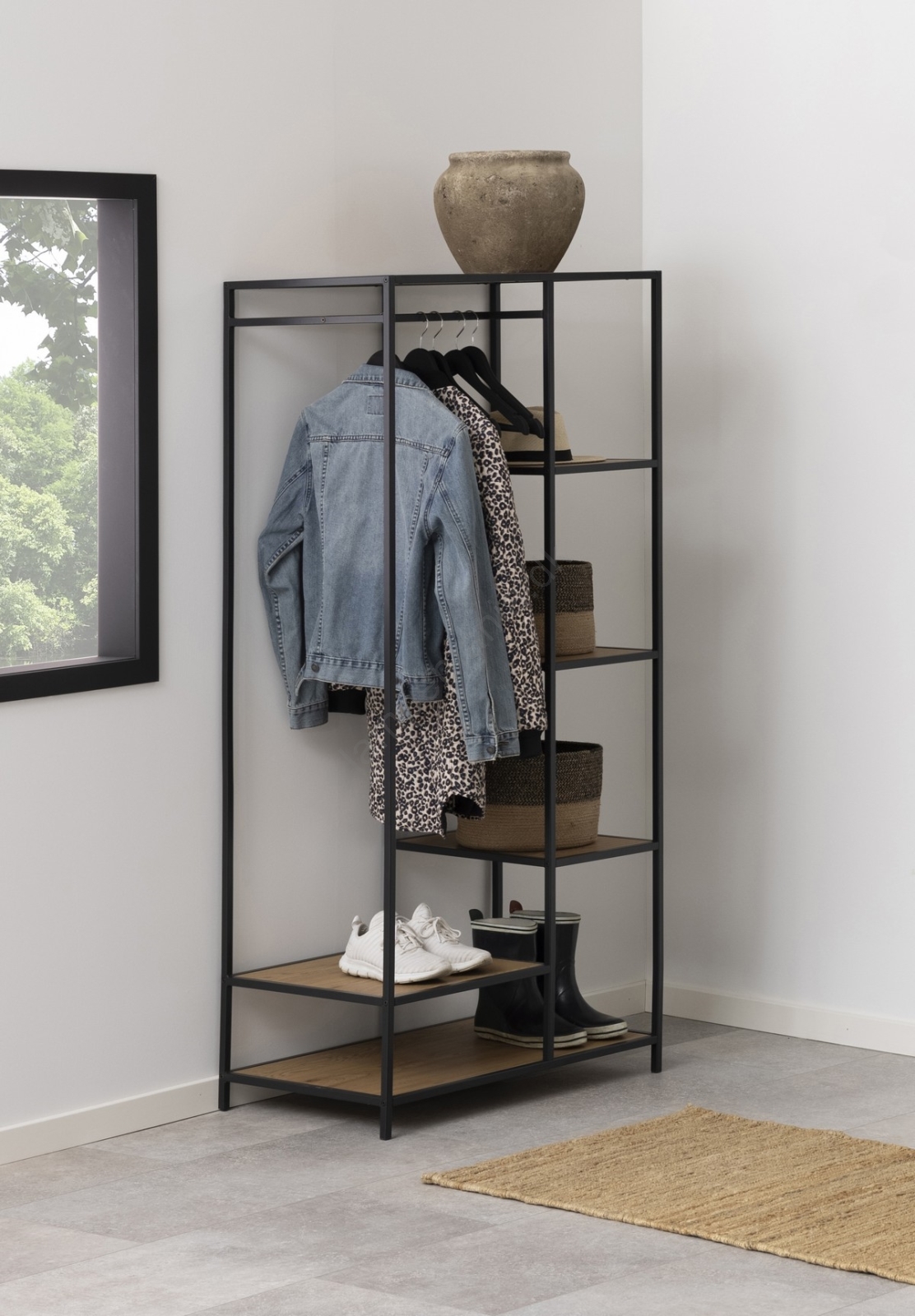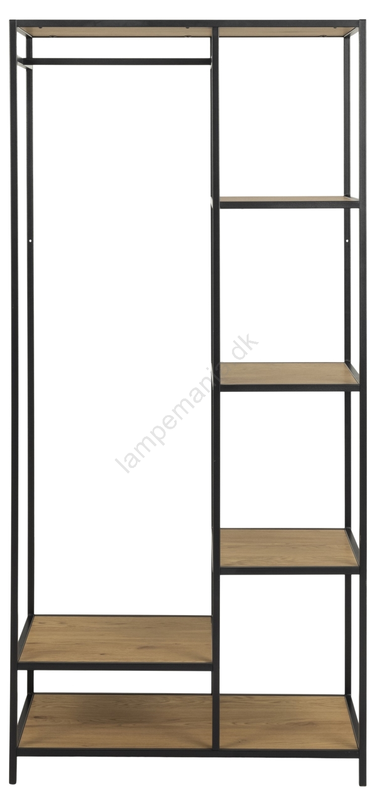 • Ramme i mat sort, groft pulverlakeret stål, 5 hylder og bund i mat, grov craft-finish med tøjstang.