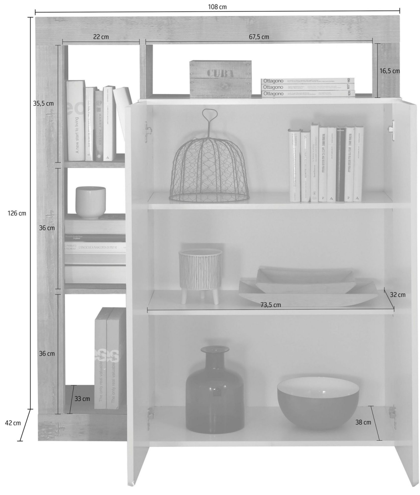 • Takket være skabene byder den på generøs opbevaringsplads til organisering af hverdagens ting.