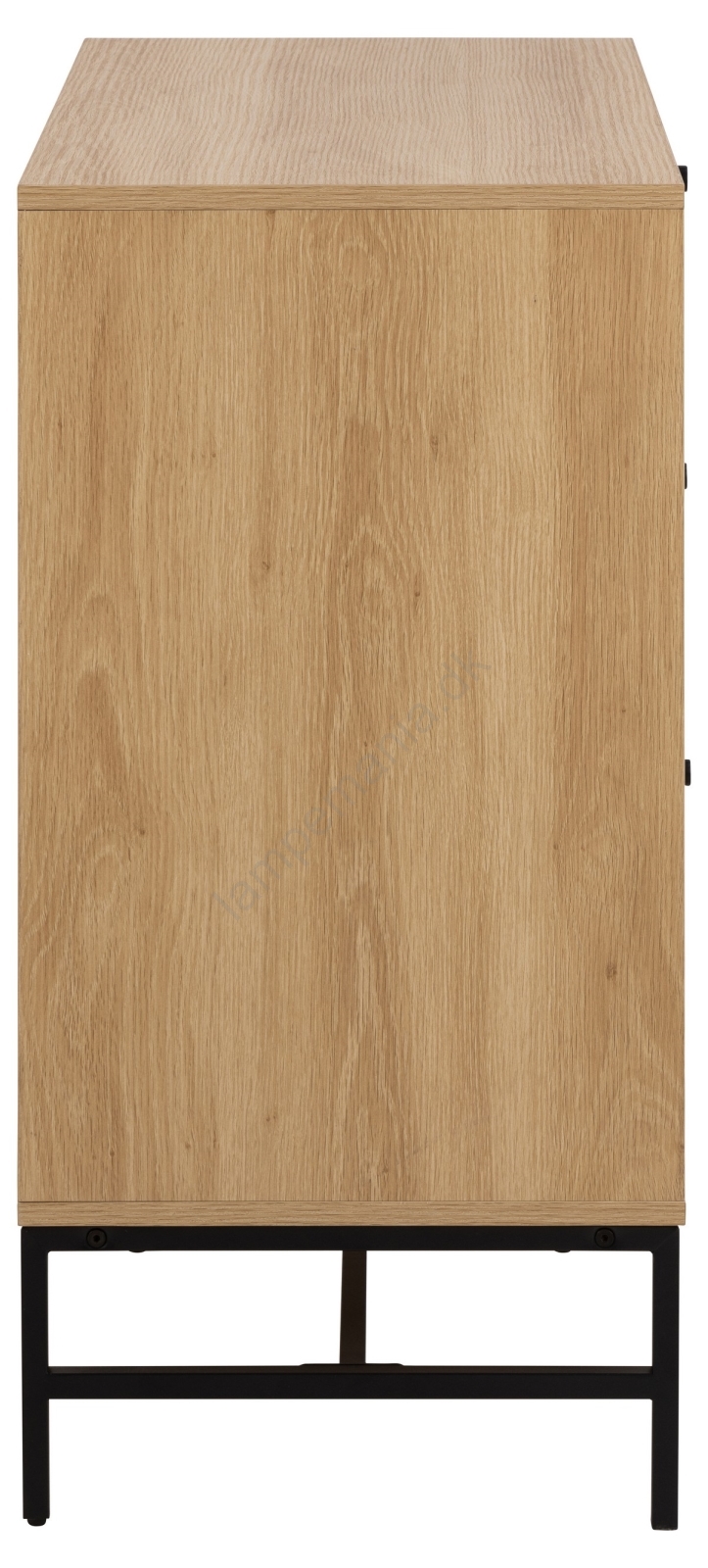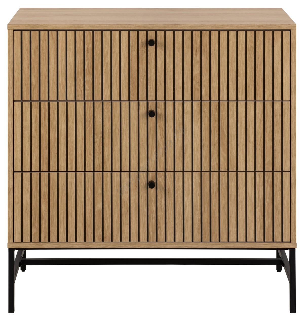 • Denne kommode i egetræslook med lamelfront giver din entré både stil og funktionalitet.