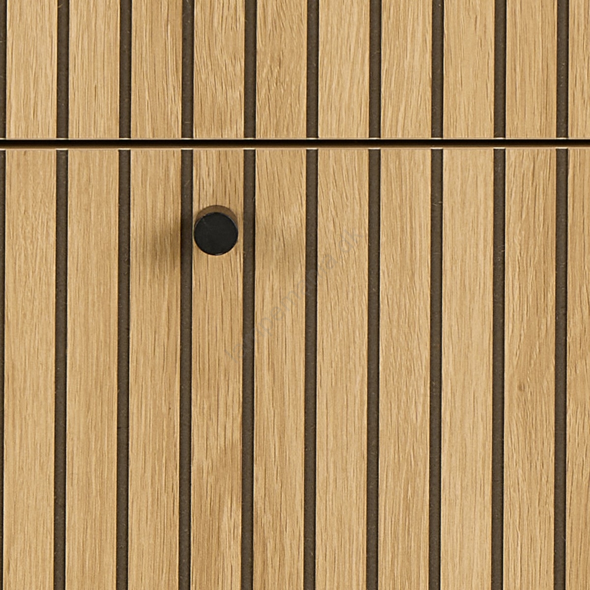 • Denne kommode i egetræslook med lamelfront tilføjer din entré stil og funktionalitet.