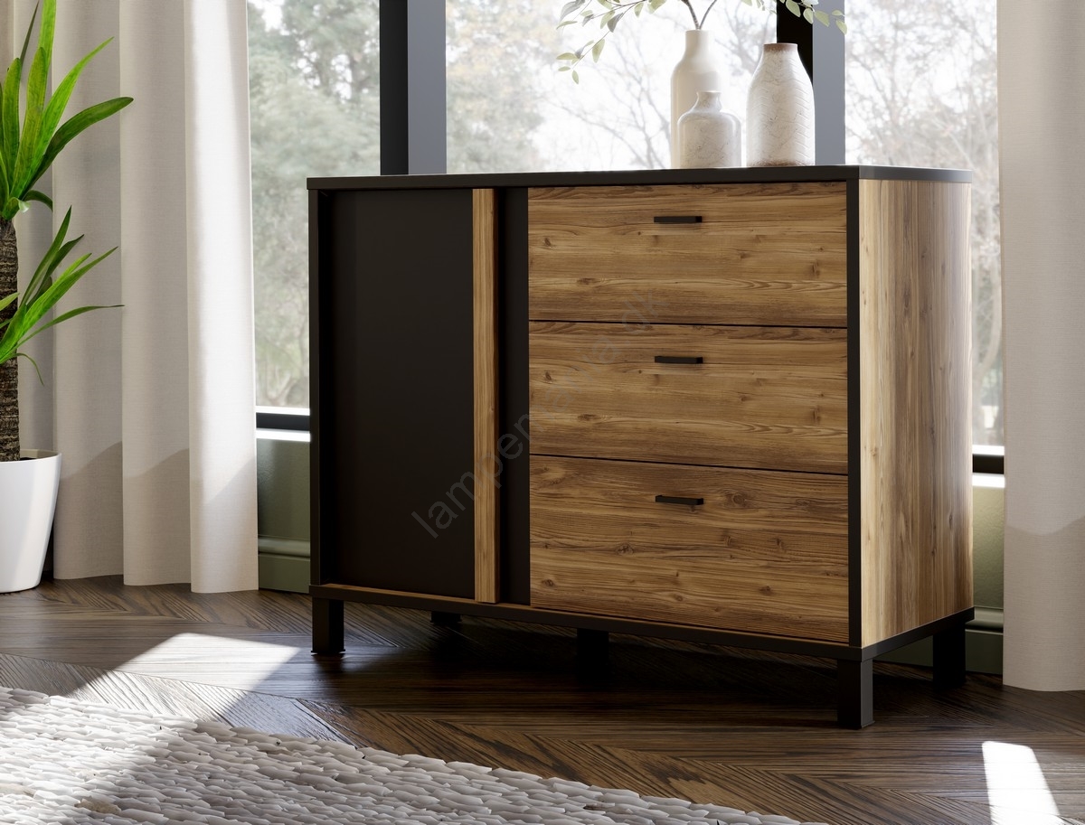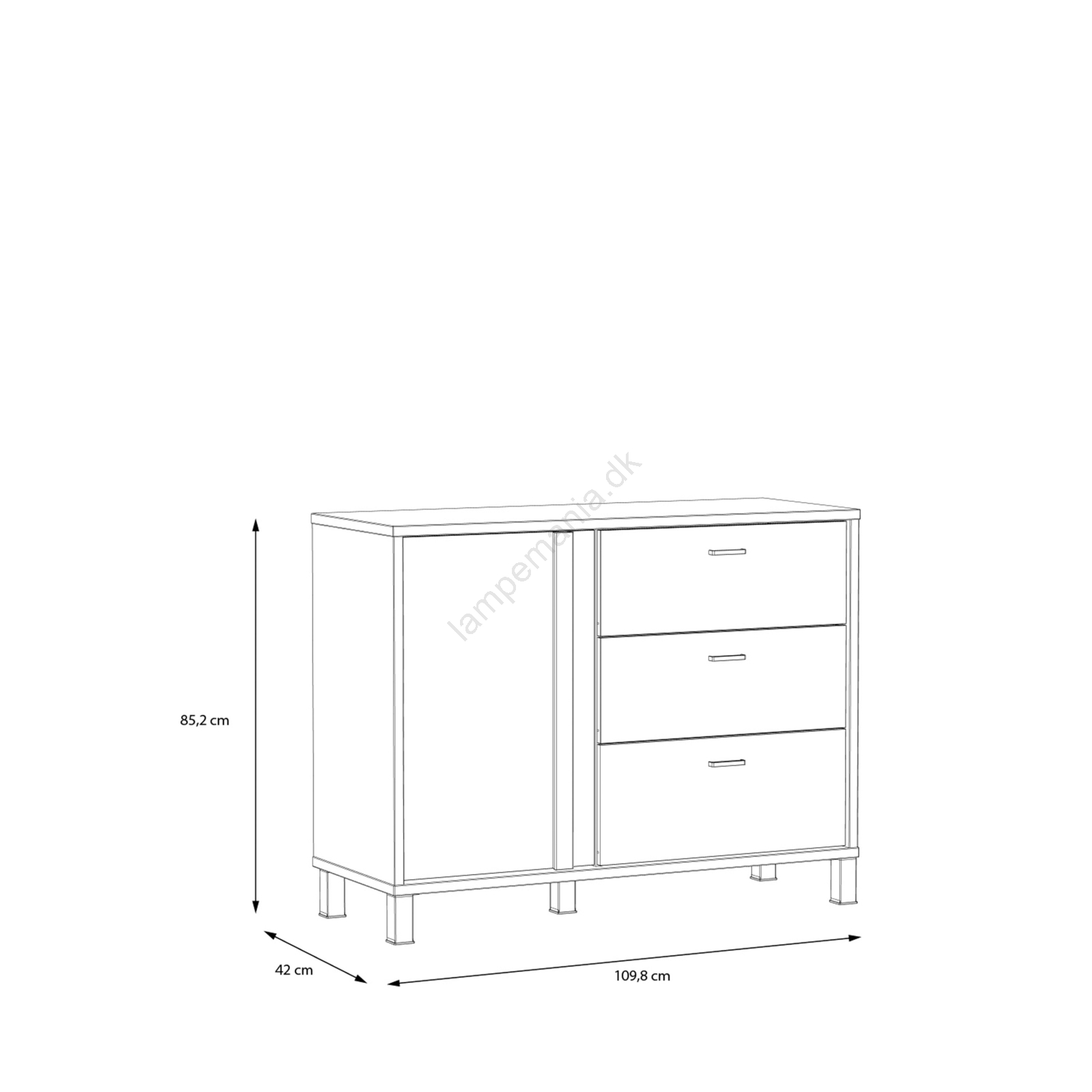 • Takket være skuffer og et skab tilbyder den generøs opbevaringsplads til organisering af hverdagens genstande.
