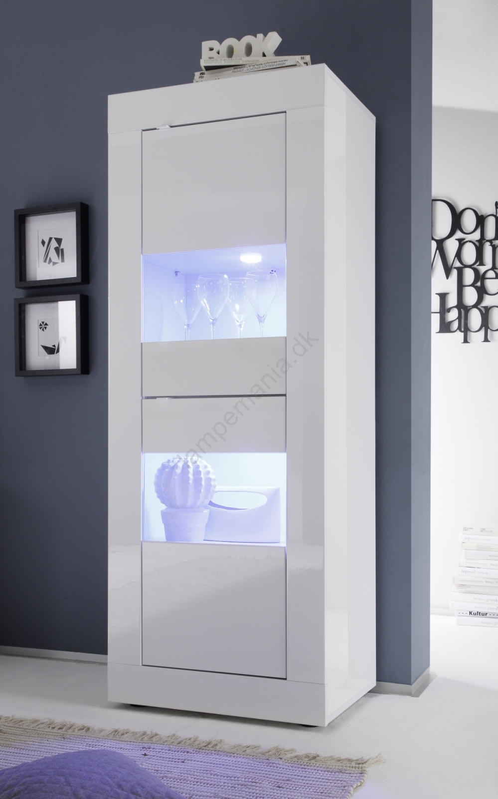 • Den har integreret blå LED-belysning, som giver rummet en moderne og hyggelig atmosfære.