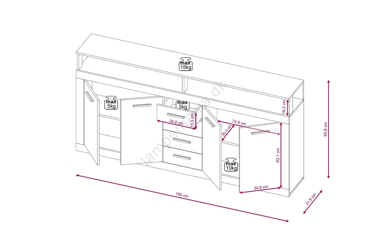 • Toppladen er tilstrækkelig rummelig til at rumme dekorationer, elektronik eller andre fornødenheder.