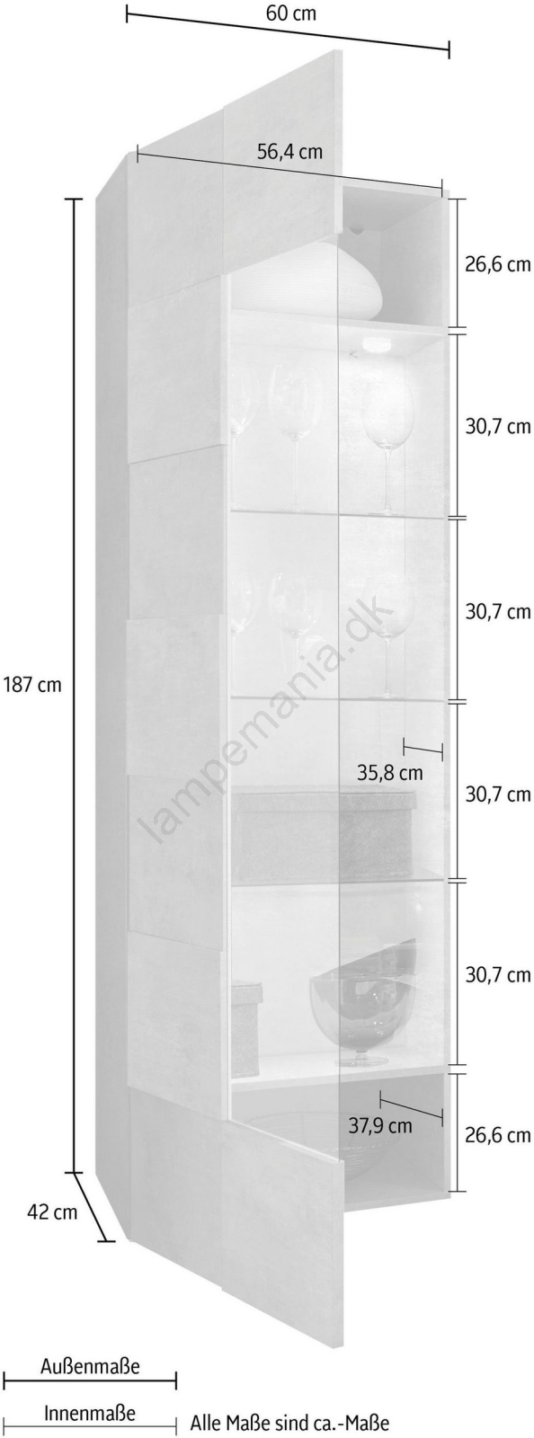 • Den har indbygget LED-belysning med hvidt lys, som tilfører interiøret en moderne og indbydende atmosfære.