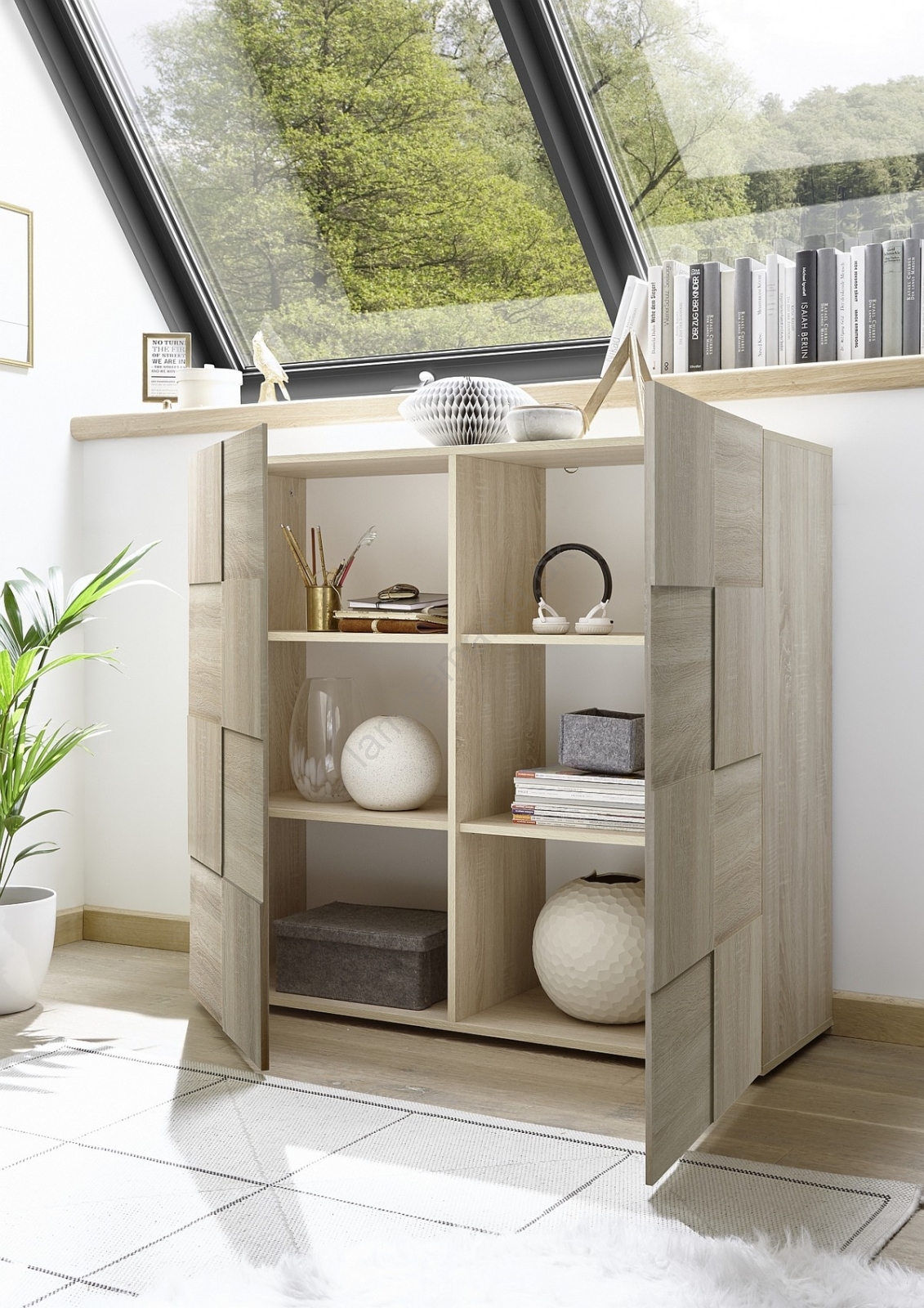 • Takket være skabene tilbyder den rigelig opbevaringsplads til organisering af dine daglige ejendele.