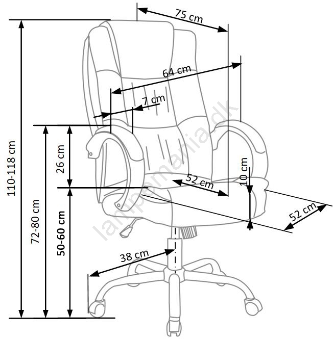 • Takket være justerbar sædehøjde og ryglænets hældning kan stolen nemt tilpasses din krop og dine siddevaner.