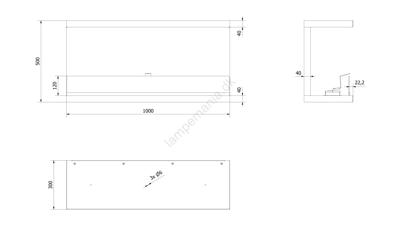 • Brænderens mål: 5,4 x 89,3 x 9,4 cm.