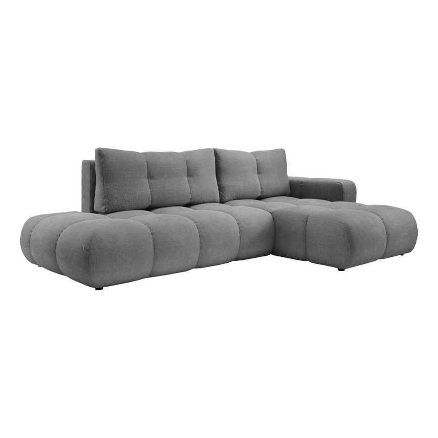 • ALMADA L-formet udtrækbar polstret hjørnesofa med opbevaringsrum, venstrevendt, grå