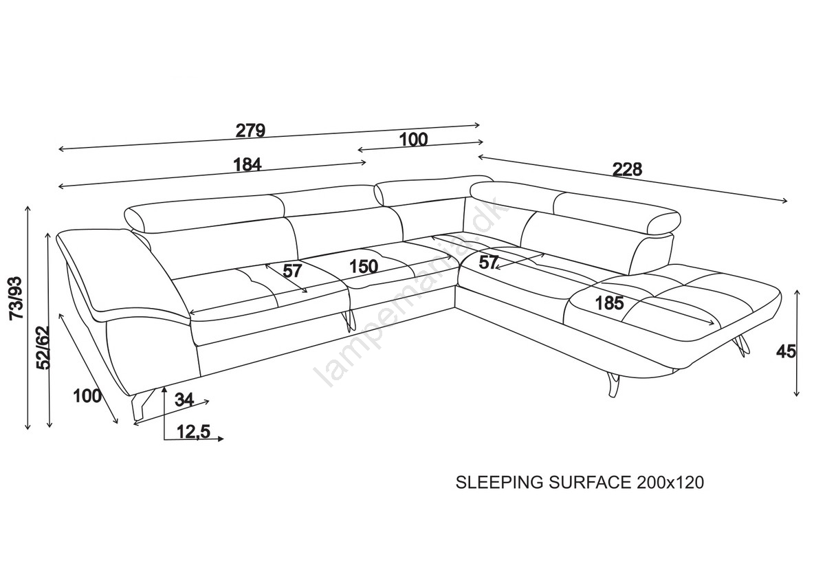 • Sofaen er udstyret med ekstra stort opbevaringsrum, som giver rigelig plads til tæpper, puder og andre nødvendigheder.