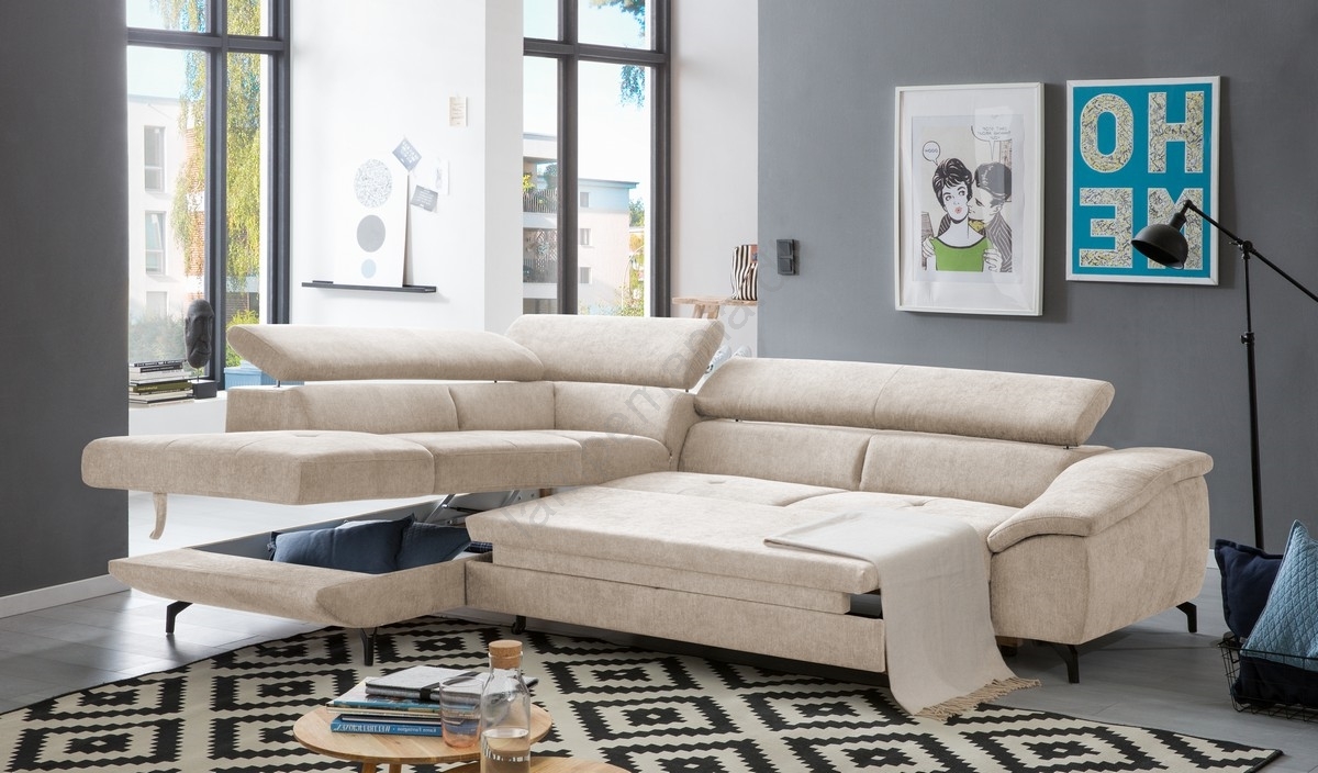 • Udtrækbar L-formet hjørnesofa med opbevaringsrum BRESCIA, venstrevendt, beige