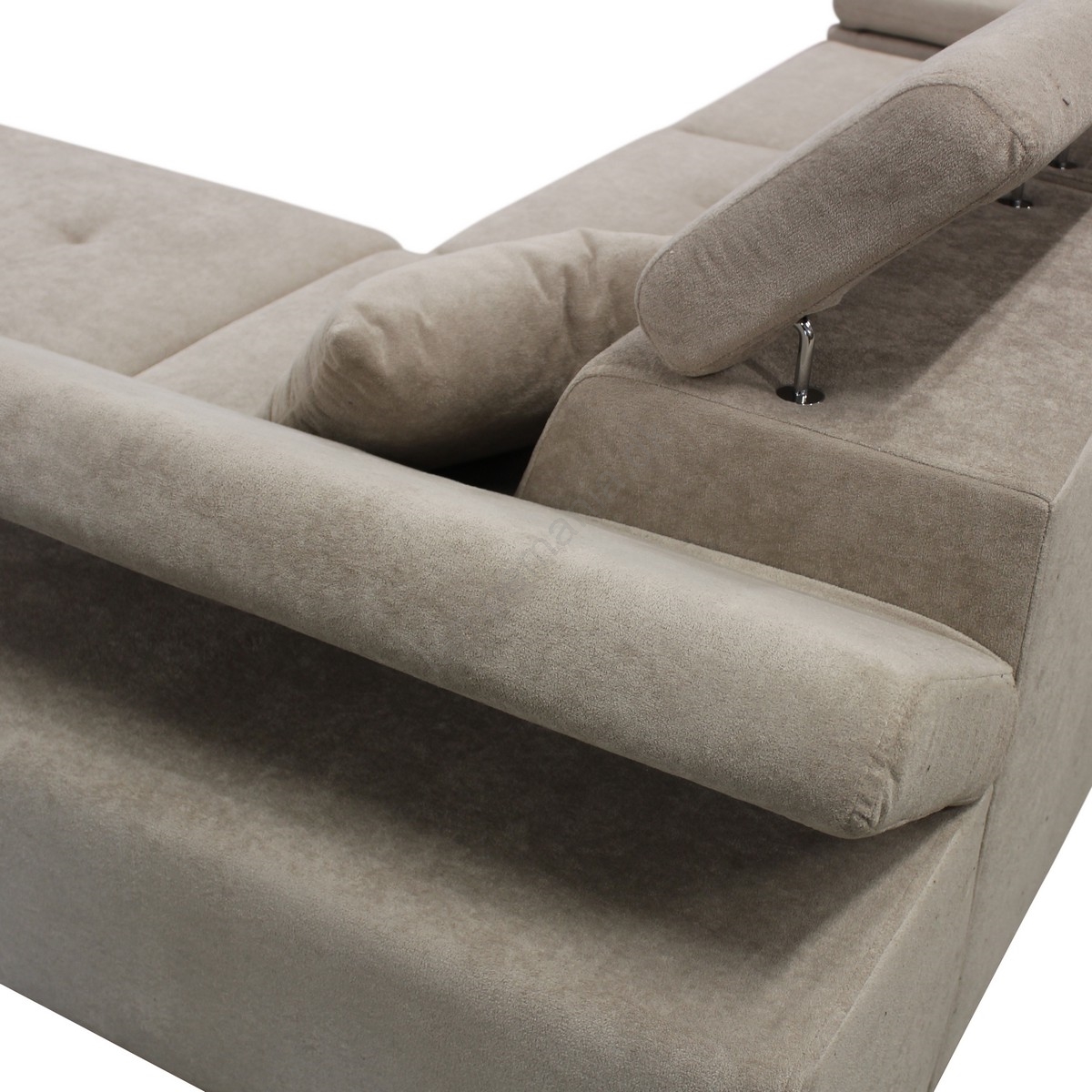 • Udtrækkelig L-formet hjørnesofa med opbevaring CASTELO, højrevendt, beige