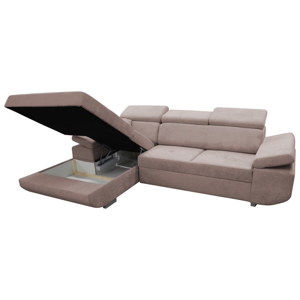 • Udtrækkelig L-formet hjørnesofa med opbevaring CASTELO, højrevendt, beige