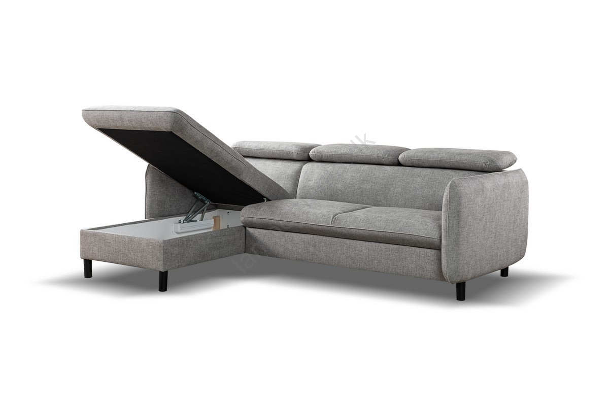 • Udtrækbar L-hjørnesofa med opbevaring NISA, grå, venstrevendt