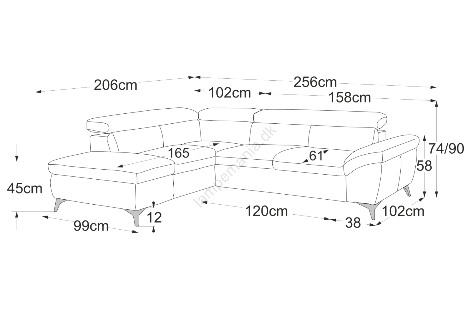 • De 12 cm høje metalben giver et moderne udtryk og sikrer stabilitet.