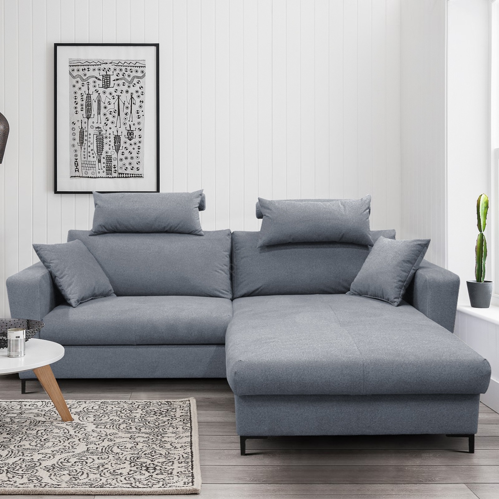 • Udtrækbar L-formet hjørnesofa med opbevaring HORTA, højrevendt, grå
