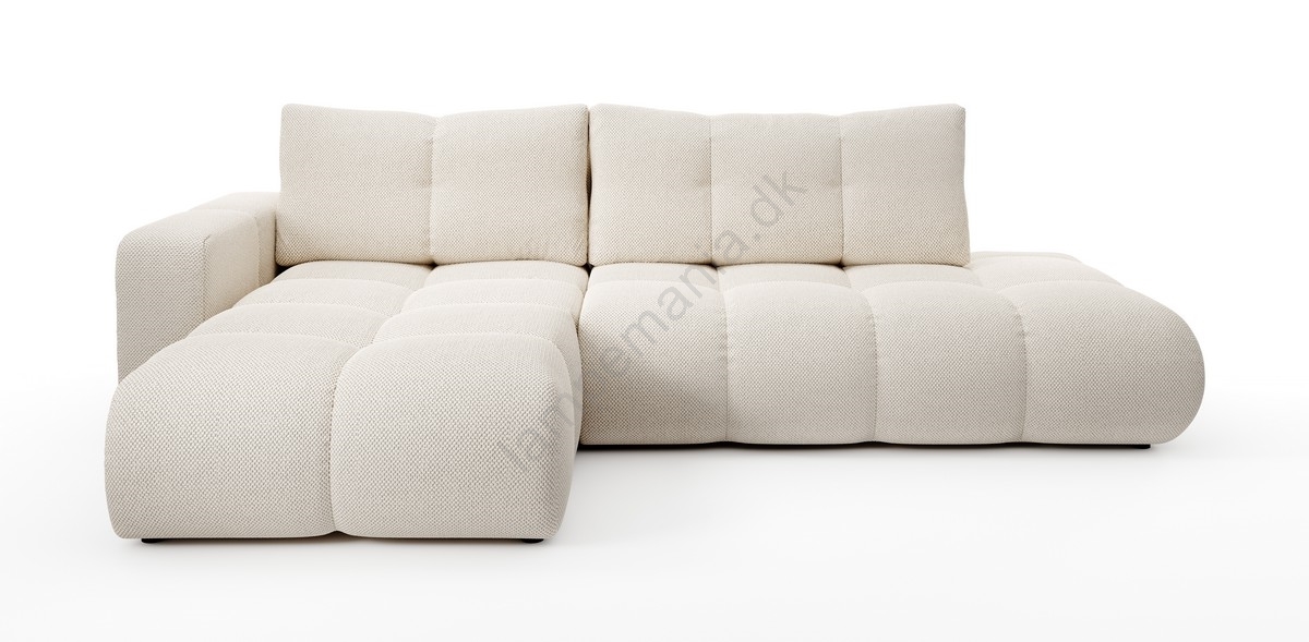 • ALMADA udtrækbar polstret hjørnesofa i L-form med opbevaringsplads, venstrevendt, beige