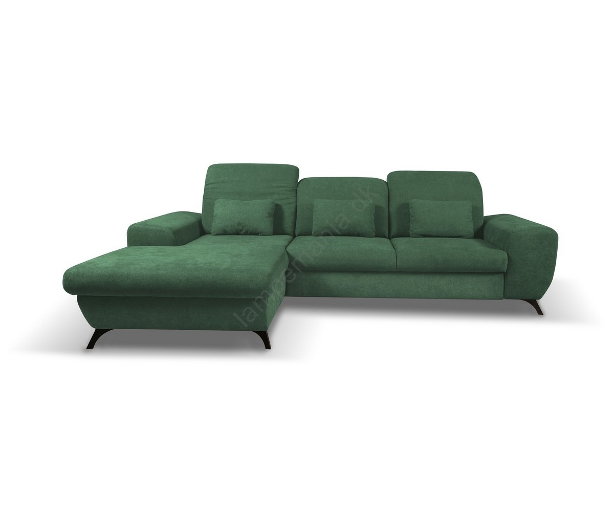 • Udtrækbar hjørnepolstret sovesofa ALTA i L-form med opbevaringsplads, venstrevendt, grøn