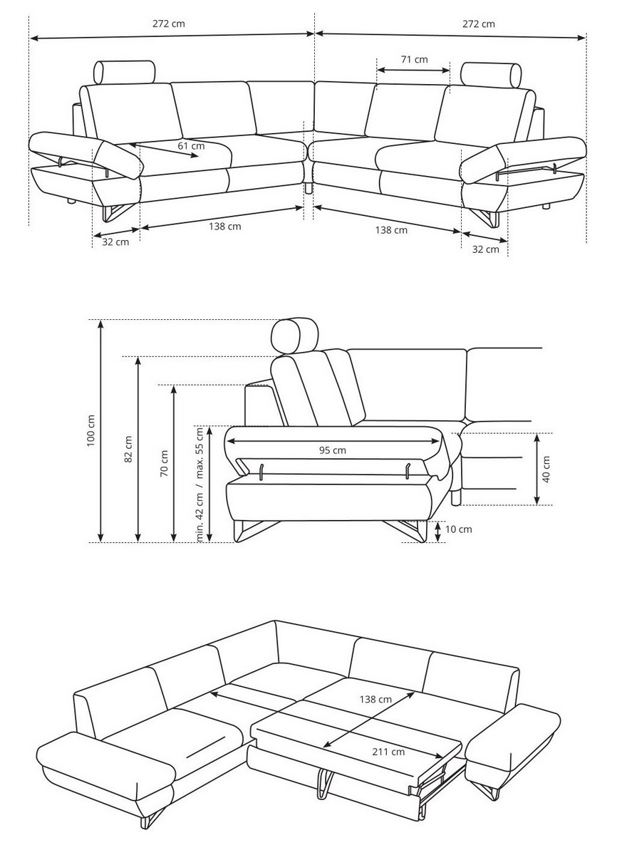 • Sofaen har et rummeligt opbevaringsrum til opbevaring af sengetøj og andre sæsonbestemte ting.