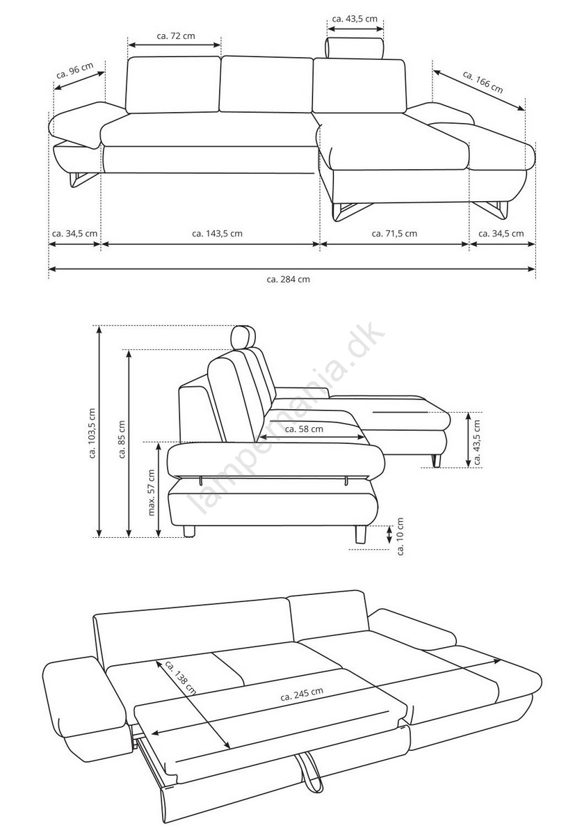 • Takket være sengefunktionen (delfinmekanisme) kan den nemt omdannes til et komfortabelt soveområde.