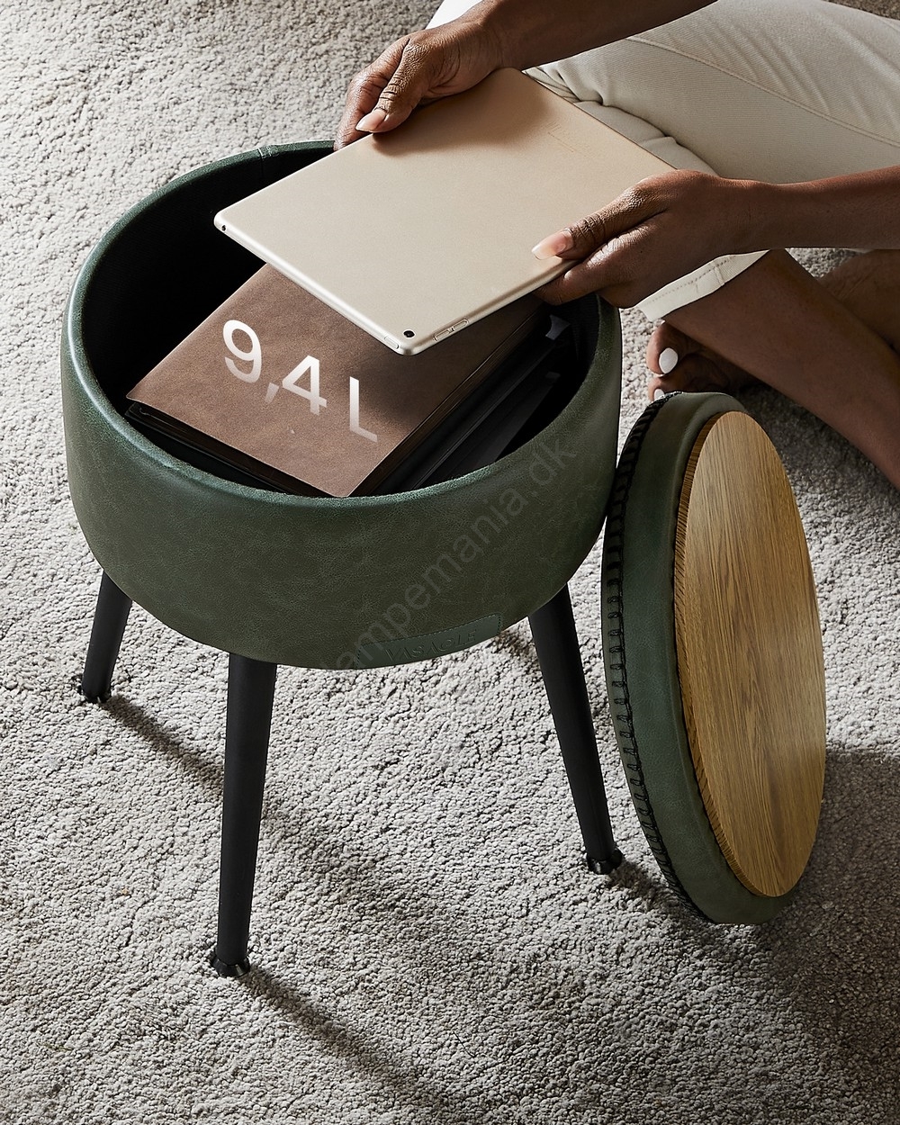 • Inde i pufen er der et rum (9,4 l) til opbevaring af elektronik, bøger, tæpper og andre småting.