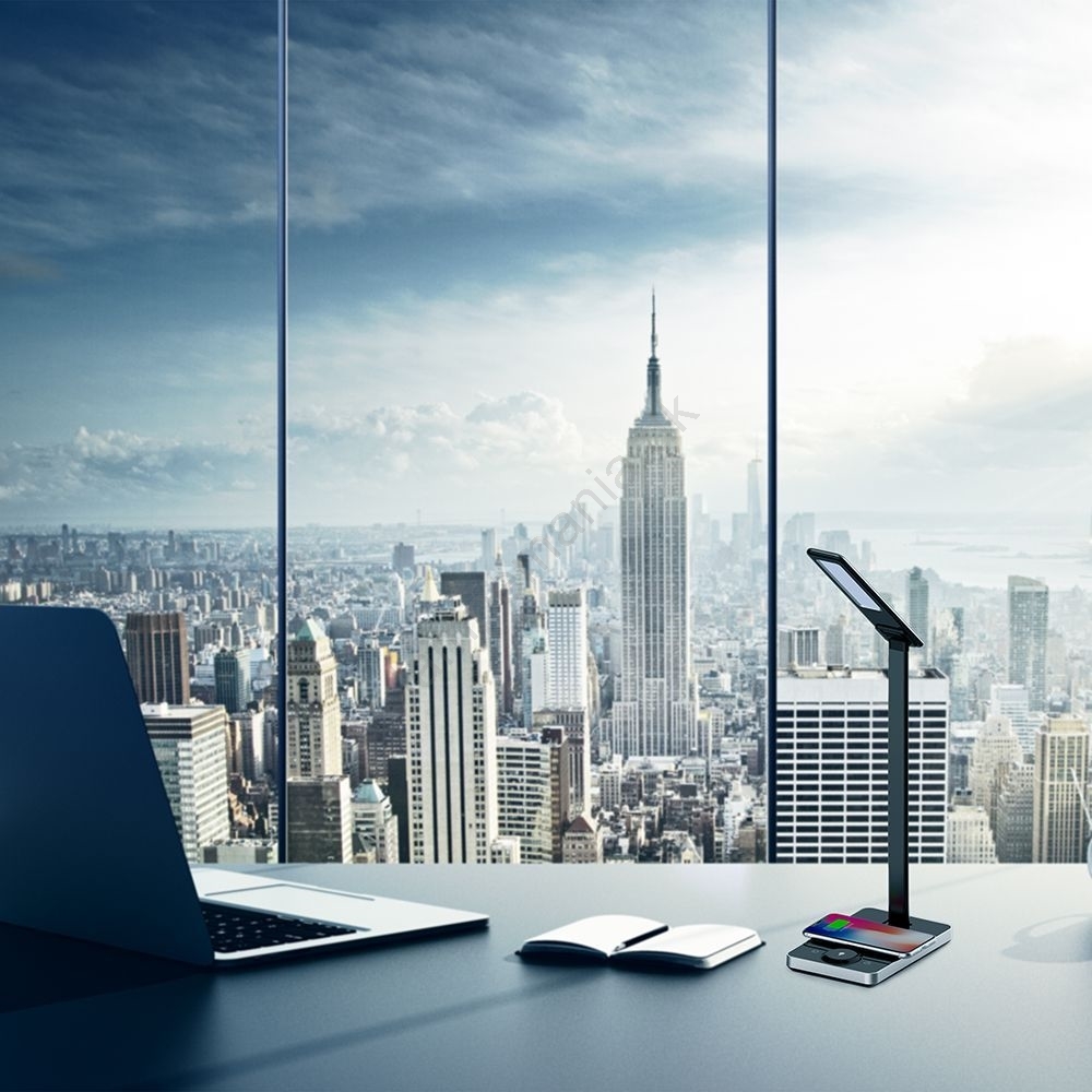 LED Touch-dæmpbar bordlampe med trådløs opladning LED/7W/5V 3000-6500K USB sort