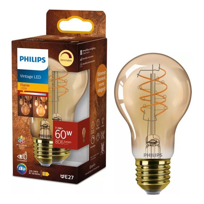 • LED-dæmpbar pære VINTAGE Philips A60 E27/7,3W/230V 2200K