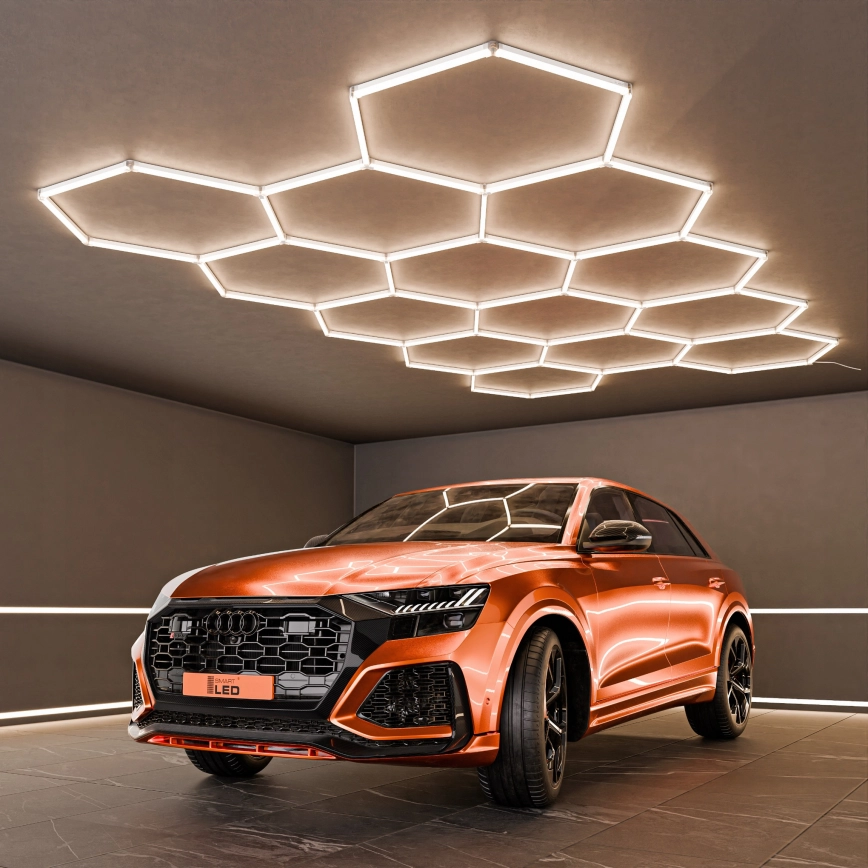 • Takket være den sekskantede struktur fungerer belysningen både som et æstetisk element og som et funktionelt lyssystem.