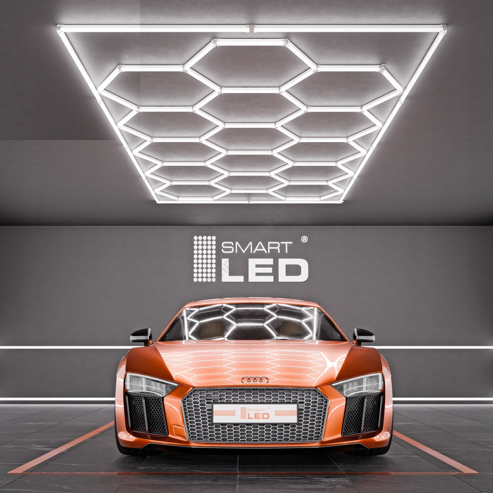 • Takket være den sekskantede struktur fungerer belysningen både som et æstetisk element og som et effektivt, funktionelt lyssystem.