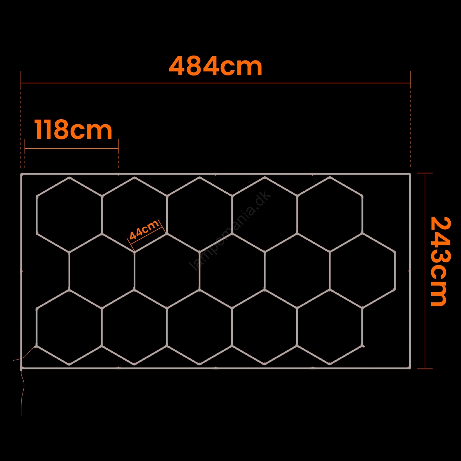 • Rammens mål: 484 x 243 cm — dækker et stort areal uden behov for separate lamper.