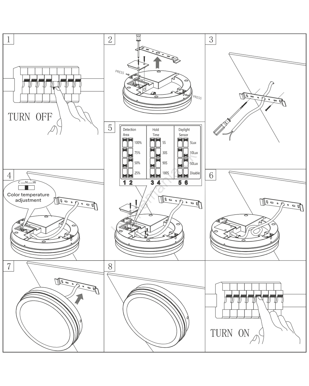 • Justerbar skumringssensor: OFF; 5 - 50 lx.