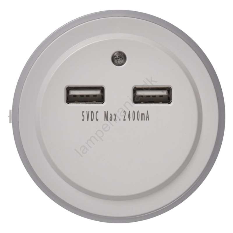 LED natlampe til stikkontakt med lyssensor + 2x USB 3xLED/0,3W/230V
