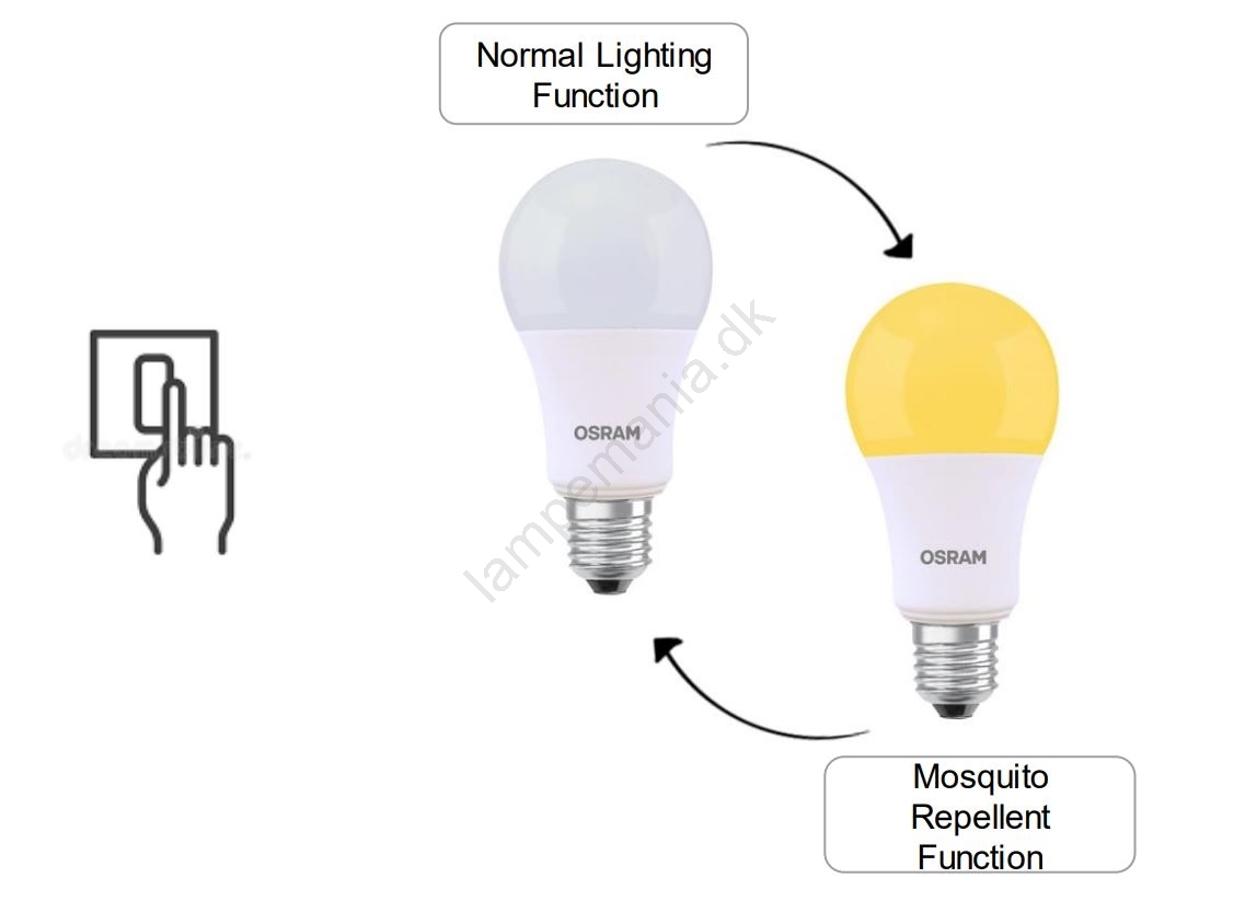 • 2 funktioner - producerer hvidt lys eller kan tændes/slukkes/tændes med en almindelig vægkontakt til tilstand med lys, der afviser insekter.
