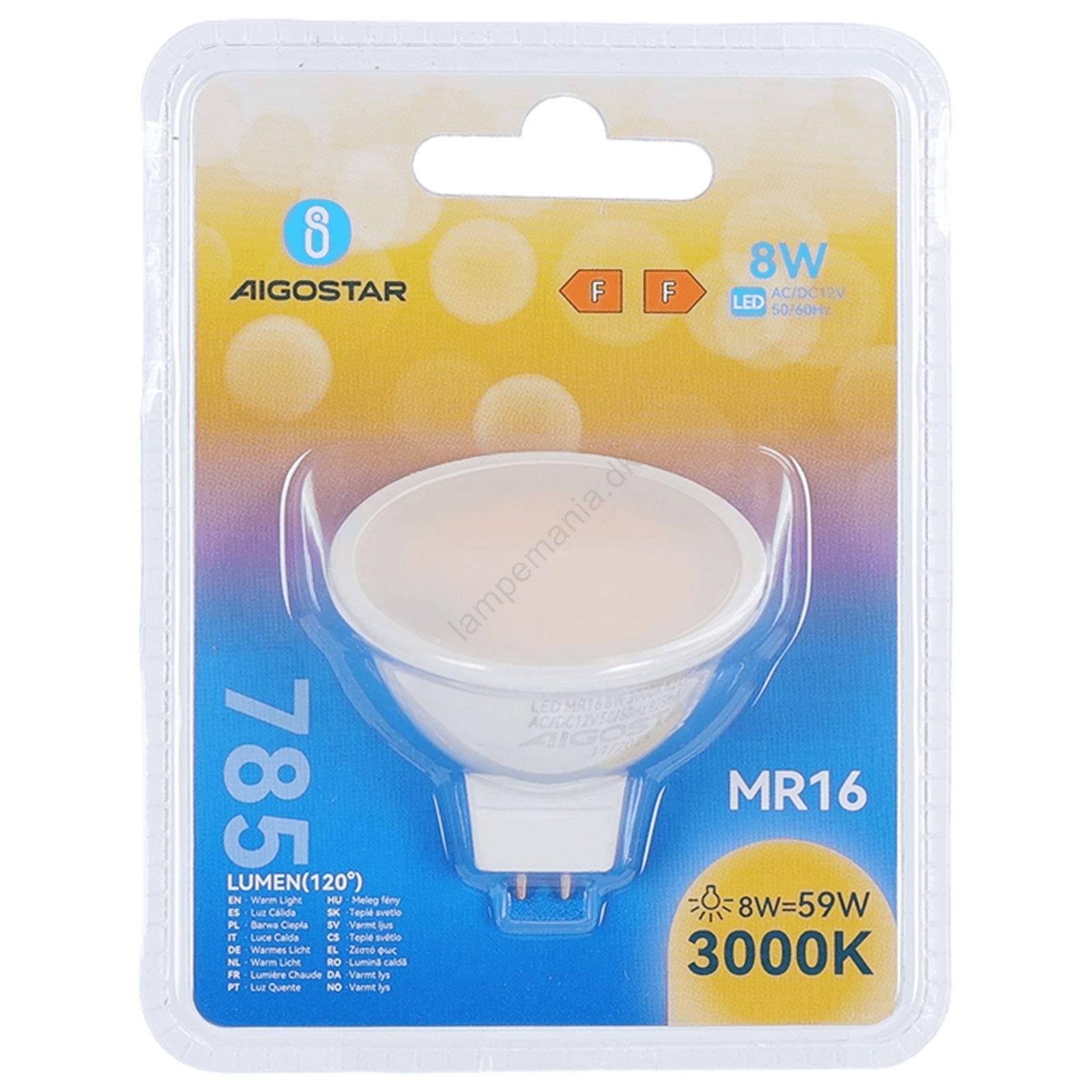 • LED-pære MR16 GU5,3/8W/12V 3000K - Aigostar