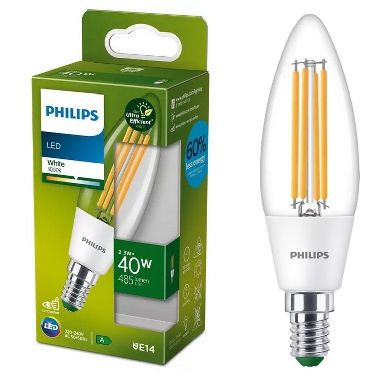 • LED-pære ULTRAEFFICIENT VINTAGE Philips B35 E14/2,3W/230V 4000K