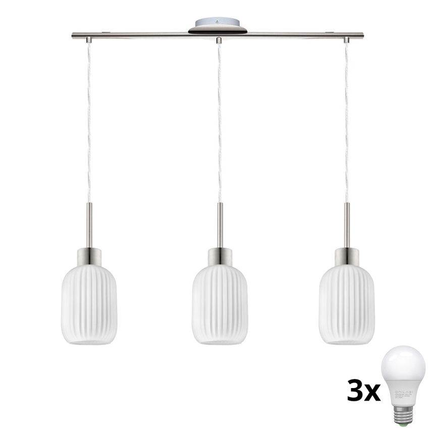 LED-pendel på kabel HARMA 3xE27/60W/230V mat krom/hvid
