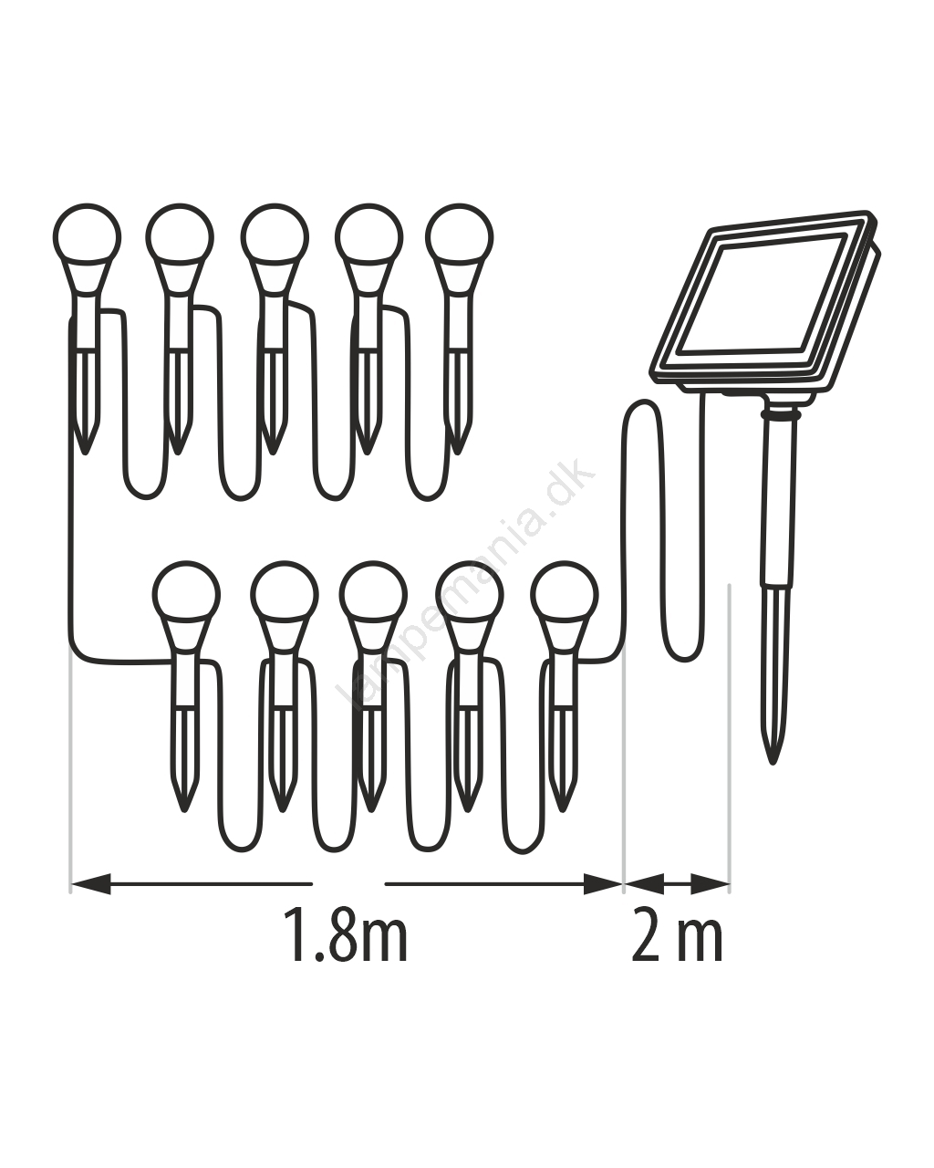 • Består af ti individuelle RGB LED-spyd fordelt på et kabel med en samlet længde på 3,8 meter.