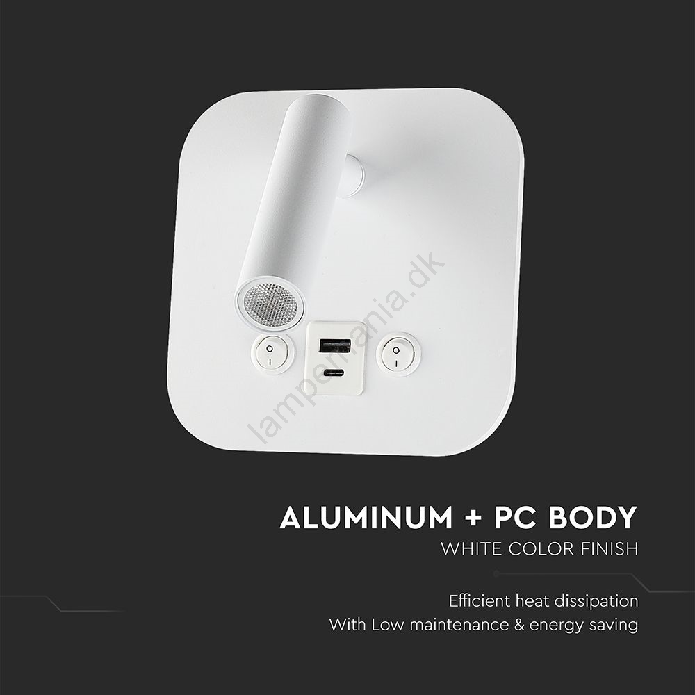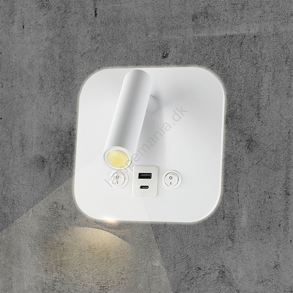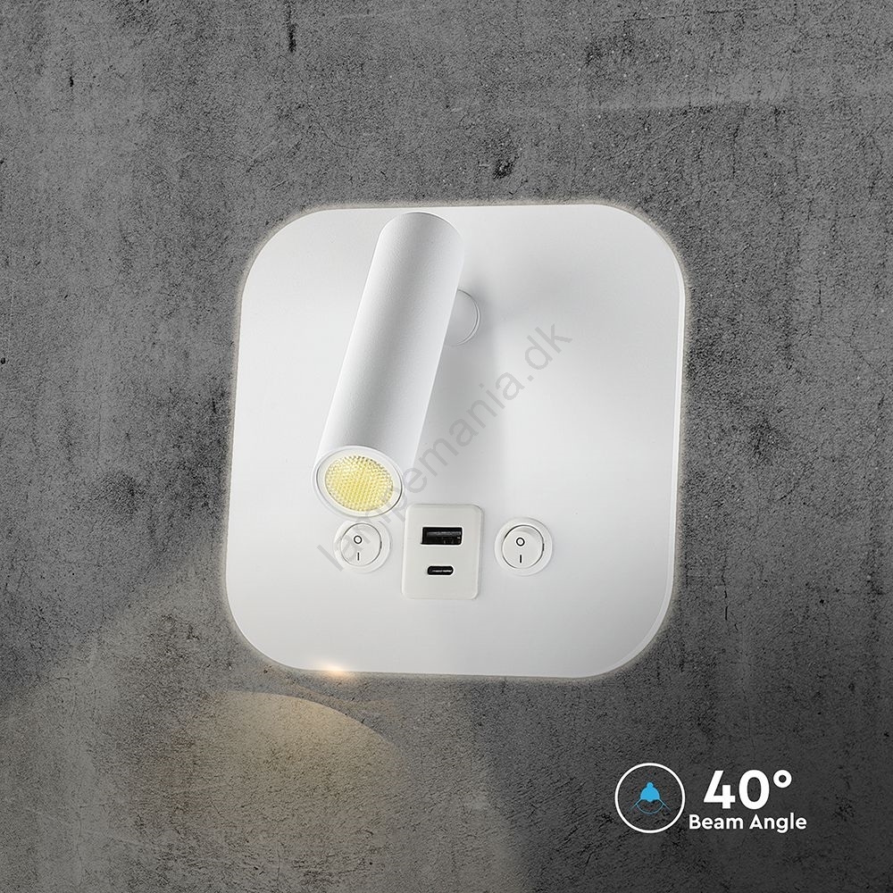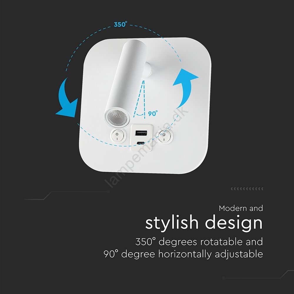 • LED vægspot med USB-port LED/8W/230V 3000K hvid