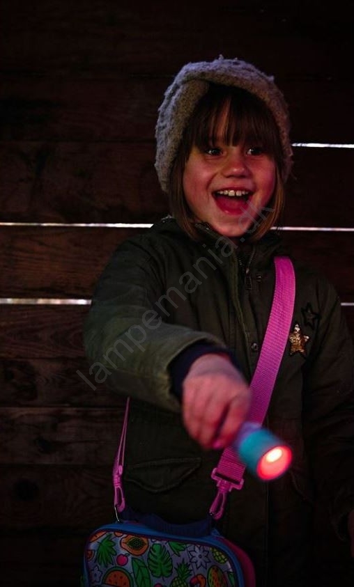 • Håndholdt lommelygte til børn, specielt designet til små opdagelsesrejsende og deres følsomme øjne.